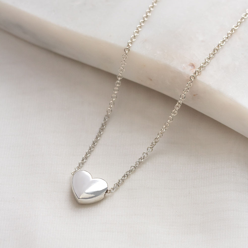 Kalın Kalp Kaydırmalı Gümüş Kolye